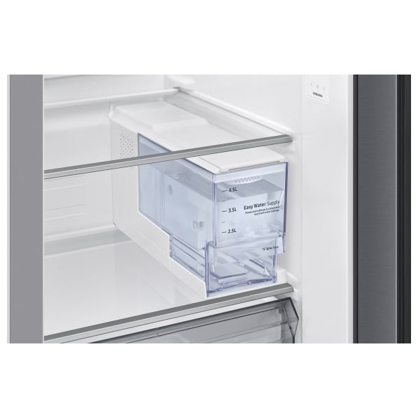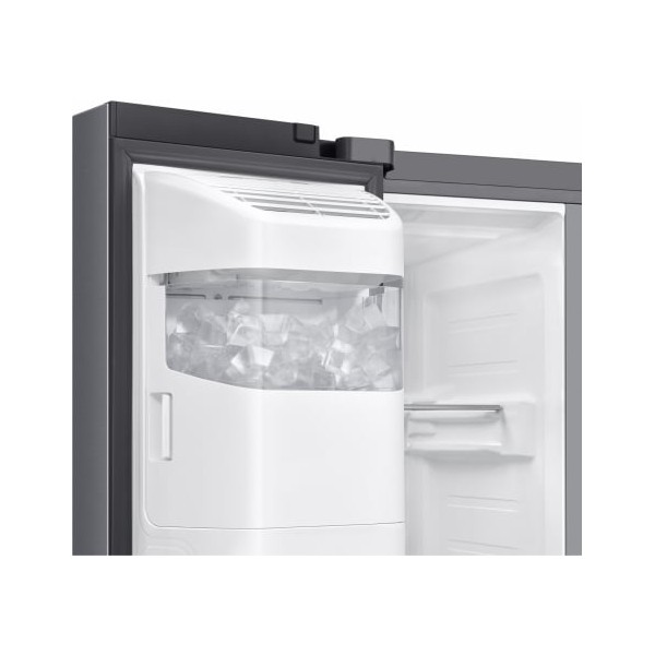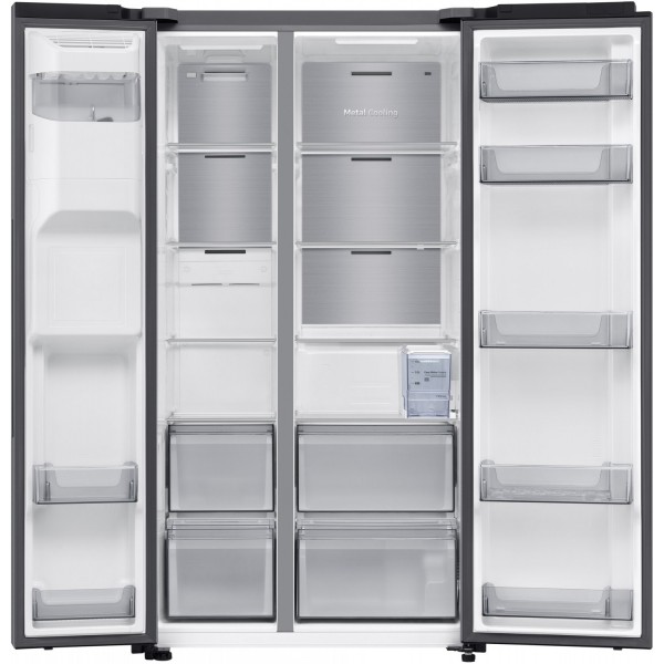 Samsung RS70F65KETEO on suure mahutavusega stiilne SBS-külmik. Külmikus on metallist jahutuspaneel, mis mitte ainult ei näe elegantne välja, vaid aitab ka temperatuurikõikumisi tasandada, eriti siis, kui ust sageli avada. Suured klaasriiulid ja sügavad uksetaskud pakuvad paindlikkust toiduainete paigutamisel. Veejaoturi ja jäämasina abil on Sul alati jahe vesi ja jääkuubikud käepärast.