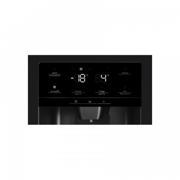 Bosch Serie 6 KAD93ABEP. Seadme paigaldus: Eraldiseisev, Tootedisain: Kahepoolne, Toote värv: Must. Neto kogumahutavus: 562 l, Kliimaklass: Kliimaklass SN-T, Müraemissiooni klass: D. Külmkapi netomahutavus: 371 l, Lambi tüüp: LED. Sügavkülmiku netomahutavus: 191 l, Sügavkülmiku paigutus: Põhja peal asetsev, Külmutusvõimsus: 12 kg/24 h. Juhtme pikkus: 1,7 m