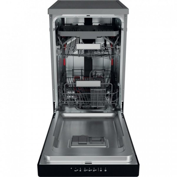 Whirlpool WSFO 3T223 PC X. Seadme paigaldus: Eraldiseisev, Toote suurus: Kitsas (45 cm), Ukse värv: Roostevaba teras. Asetuste arv: 10 kohta, Müraemissiooni klass: B, Müratase: 43 dB. Energiatõhususe klass: E, Veekulu tsükli kohta: 9 l, Energiatarve 100 tsükli kohta: 76 kWh. Laius: 450 mm, Sügavus: 590 mm, Kõrgus: 850 mm. Pakendi laius: 500 mm, Pakendi sügavus: 675 mm, Pakendi kõrgus: 890 mm