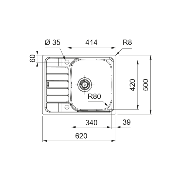 Välismõõt: paremalt vasakule 620 mm