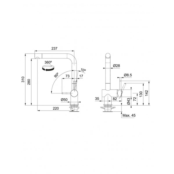 Versioon Pööratav tilaSegisti tüüp KõrgsurveJuhtimistüüp Külgmine kangKäepideme asend parempoolneLäbimõõt (segistid valamu sees) Ø 35 mmKogukõrgus 310,00 mmPöördenurk 360 °Värv Pronks