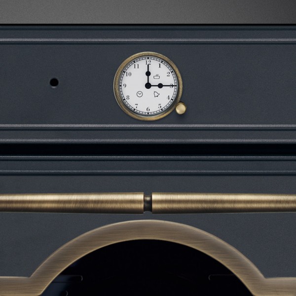 Ahi Smeg, Cortina, 6 küpsetusfunktsiooni, analoog-programmkell, ahju maht 70 l, temperatuurivahemik 50-250°C, 5 küpsetustasandit, 1 x 40W halogeen valgusti. Komplektis emailitud 40 mm äärega küpsetusplaat, grillrest. viimistlus antratsiit/messing.