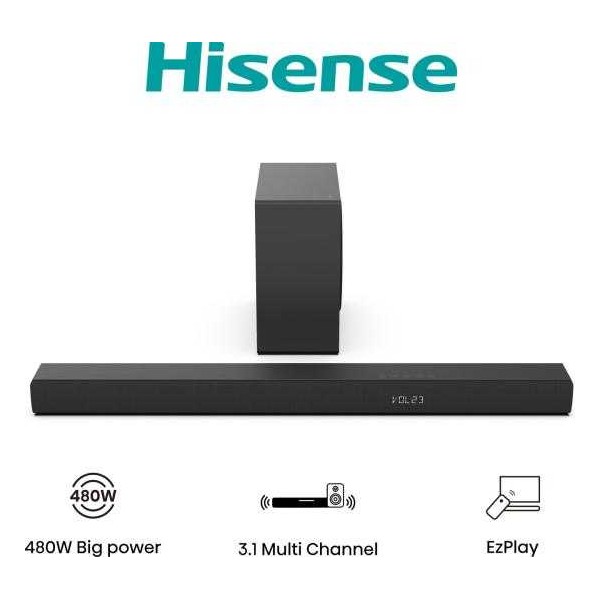 Heliriba Hisense HS3100 kodukinosüsteemil on heliriba, mis on helipaneel. Selle heliriba suurepärane omadus on see, et see ühendab kõlarid üheks, nii et te ei pea muretsema nende paigutamise pärast – asetage heliriba lihtsalt teleri lähedale ja nautige heli! 3.1 kodukino Hisense HS3100 kodukinosüsteem koosneb kolmest kõlarist ja ühest subwooferist. Kasutage neid helisüsteemi loomiseks ja nautige heli! Subwoofer lisab helile sügavust ja bassi. Juhtmevaba subwooferi ühendus: Hisense HS3100 kodukino kõlarisüsteemil on juhtmevaba subwooferi ühendus. Kuna see on juhtmevaba, saate subwooferi paigutada kuhu iganes soovite ja juhtmed ei kahjusta ruumi kujundust. Bluetooth: Hisense HS3100 kodukinosüsteemil on juhtmevaba Bluetooth-liides, mis võimaldab teil esitada muusikat oma mobiiltelefonist või Bluetooth-toega MP3-mängijast. Kuulake oma lemmikmuusikat valjemini ja suurema võimsusega!