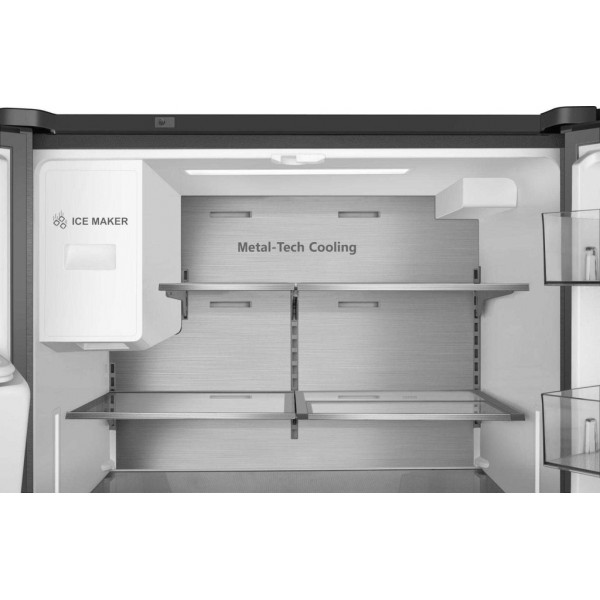 Prantsuse uksega - neljaukseline külmik Hisense RF793N4SAFE külmik on prantsuse uksega külmik, mis sobib ideaalselt avaratesse köökidesse ja on asendamatu lisa igasse koju suurele perele, kuna selle disain võimaldab mahutada suuri toiduvarusid pikaajaliseks säilitamiseks. Selle väljatõmmatav sügavkülmiku sahtel on paigaldatud külmiku sektsioonide alla kolme kitsa ja tugeva uksega. See disain võimaldab teil vajalikke toiduaineid kätte saada ainult ühe ukse avamisega, vähendades seeläbi külma õhu kadu ülejäänud sektsioonides ja vähendades energiatarbimist. Hisense RF793N4SAFE külmik on elegantne viis suure pere toidukaupade varumiseks! Puutetundlikud ja elektroonilised juhtnupud: Seadke Hisense RF793N4SAFE külmiku soovitud temperatuur ja funktsioonid, puudutades puutepaneeli või vajutades õrnalt juhtpaneelil olevaid nuppe. Jäämasin: Hisense RF793N4SAFE külmik muudab vedelikud kokteilide jaoks kuubikuteks või purustatud jääks. Asetage lihtsalt klaas Hisense RF793N4SAFE külmiku välisukse nišši, täitke see jääga ja nautige värskendavat jahedust. Kiire jahutamine: Hisense RF793N4SAFE külmik suudab kiiresti jahutada suuri toidukoguseid. Värske toit on palju soojem kui toit, mis on mõnda aega külmkapis seisnud. Mõlema kahjustamise vältimiseks tuleb nende temperatuurid ühtlustada. Režiim „Kiirjahutus” alandab külmikuosa temperatuuri ajutiselt +2 °C-ni, võimaldades uuel toidul kiiresti jahtuda, kahjustamata olemasolevat toitu. Sääst ja ohutus: Hisense RF793N4SAFE külmik jälgib automaatselt teie toidu seisukorda, hoiatades teid avatud ukse või voolukatkestuse põhjustatud väikeste temperatuurikõikumiste eest, mis võivad viia lubatud temperatuuri tõusuni ja sellest tulenevalt toidu kahjustumiseni. Hisense RF793N4SAFE külmik tagab teie toidu värskuse, säilivuse ja kvaliteedi. Värske tsoon: Hisense RF793N4SAFE külmik hoiab puuvilju, köögivilju ja ürte pikka aega värskena tänu oma "värskele tsoonile". "Värske tsoon" loob optimaalsed tingimused (temperatuur -2 kuni +2 °C ja õhuniiskus 90 kuni 100%) ürtide ja köögiviljade säilitamiseks. Hisense RF793N4SAFE külmik säilitab teie toidu välimuse, aroomi ja maitse ilma seda jääks muutmata.