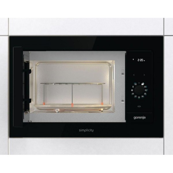 Gorenje BM235G1SYB. Seadme paigaldus: Sisseehitatud, Toote tüüp: Kombineeritud mikrolaineahi, Sisemahutavus: 23 l, Mikrolainevõimsus: 900 W, Sisseehitatud ekraan, Kontrolli tüüp: Pöörlev, Puudutus, Toote värv: Must