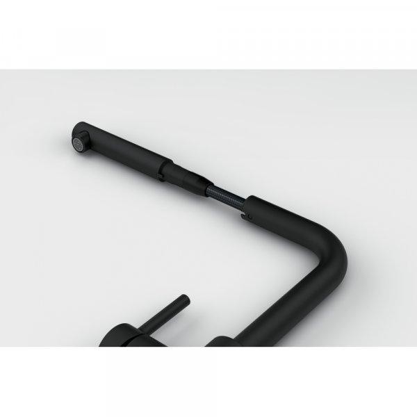 Kangsegisti, väljatõmmatav otsik, kang paremal, pööratav 360°, painduvad ühendusvoolikud 450 mm pikkused.