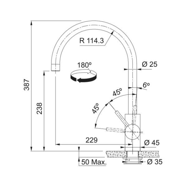 Veevooliku pikkus 450 mm