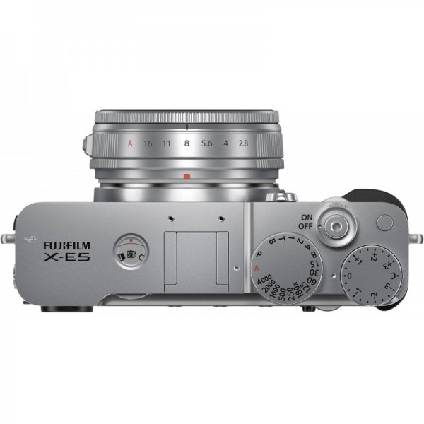 X-E5 disainis on iga detail hoolikalt läbimõeldud. Näiteks on pildiotsija ja dioptrikorrektsiooninupp korpusega tasaselt integreeritud, samal ajal kui alumisel plaadil olev Bluetooth-nupp meenutab klassikalise filmikaamera tagasikerimisnuppu.