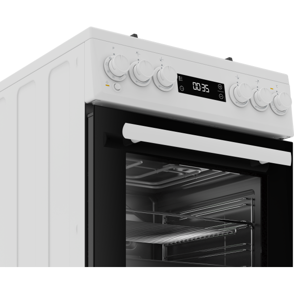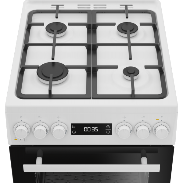 4 gaasipõletit, millest 1 suur wok põleti, elektrisüüde integereeritud nupu alla, stopp-gaas süsteem, digitaalne programmi ekraan, elektriahi, lastelukk, enegiaklass A, ahjumaht 60 l, 8 funktsiooni (k.a sulatamine, 3D küpsetamine, grill), aurupuhastus, turbo küttekeha, seadmega kaasas 1 madalate äärtega pann ja võreriiul, klapiga panipaik tarvikute hoidmiseks, k*l*s 85*50*60 cm,värv: valge
