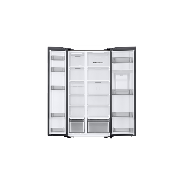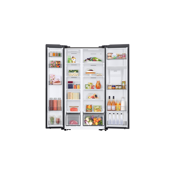 Samsung RS57DG410EM9EO on stiilne SBS-külmik, mis on ideaalne neile, kes otsivad kaasaegset ja funktsionaalset lahendust oma köögi jaoks. See nutikas külmkapp on varustatud WiFiga, pakkudes mugavust ja kontrolli otse Sinu nutiseadmest.